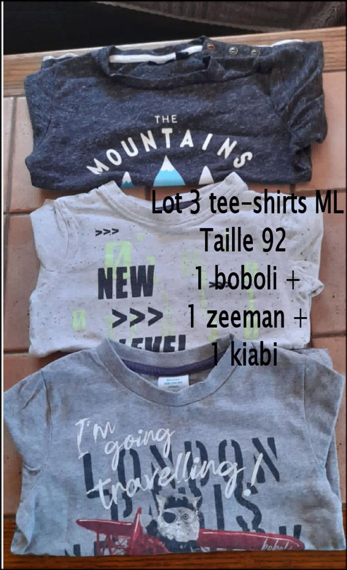 Lot 3 tee-shirts ML Taille 92 1 Kiabi + 1 Zeeman + 1 Boboli