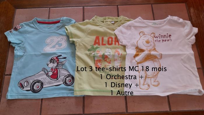 Lot 3 tee-shirts MC Taille 18 mois 1 Orchestra 1 Disney 1 Autre marque