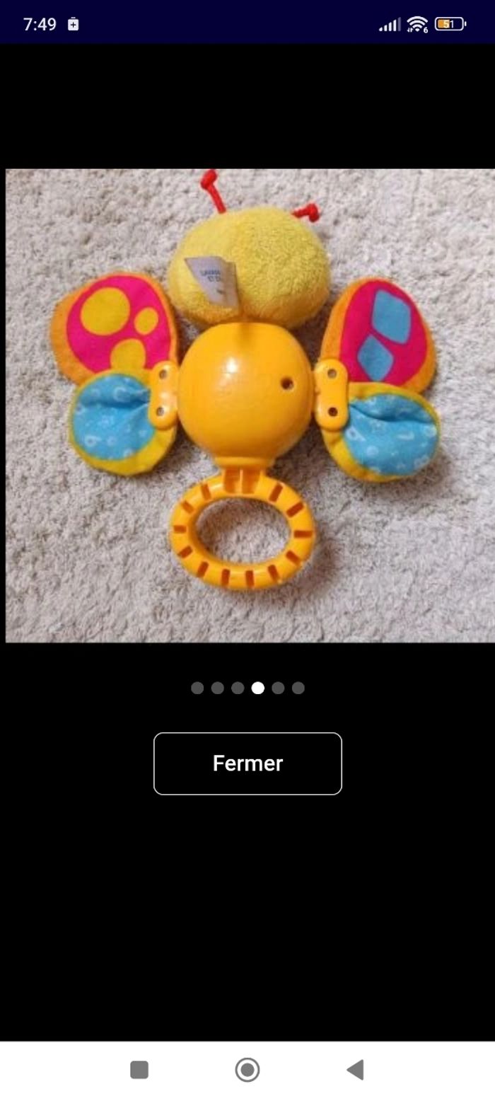 hochet parlant, musical et lumineux en forme de papillon pour découvrir les premiers chiffres, les formes et les couleurs Des jeux de textures : la tête du papillon est en tissu tout doux et ses ailes en tissu bruissant Quand Bébé secoue le hochet, il déclenche des mélodies et des effets sonores amusants- Une touche note de musique en forme de cour clignote, déclenche des effets sonores, des mélodies et une chanson En manipulant les ailes du papillon, Bébé déclenche 4 mélodies et 1 chanson