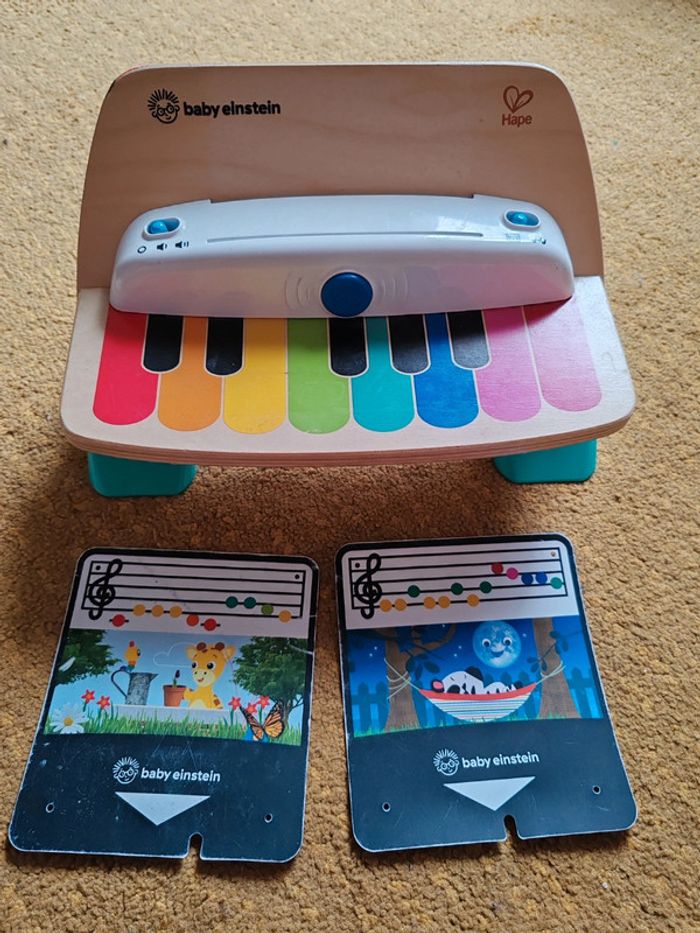Le piano Magic Touch de la marque Hape est un jouet d'éveil qui permettra aux petits bouts de chou de s'initier à la musique et de découvrir une nouvelle façon de jouer du piano. Avec ce jouet musical, votre enfant découvrira des centaines de nouvelles chansons qui prendront vie sous ses petits doigts de musicien. Ce jouet pour enfants en bois est activé par le toucher de l'enfant, ainsi pas besoin de boutons ni de clés spécifiques.