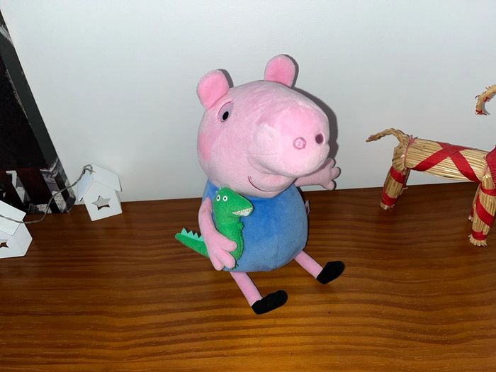 Rose et bleu Avec son petit dinosaure vert dans les bras