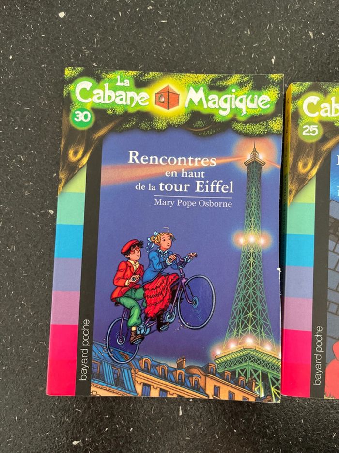 Je vous propose ce lot de trois livres à la cabane magique le tome 25 le tome 30 et le tome 34. Ils sont en très bon état sauf le 30 une partie de la couverture qui se rabat a été coupée pour faire marque-pages. Le nom prénom a été noté dans deux livres recouvert par du blanc voir photo, donc deux livres à chacun deux euros et le troisième un euro pièce