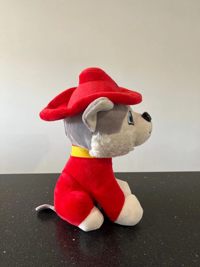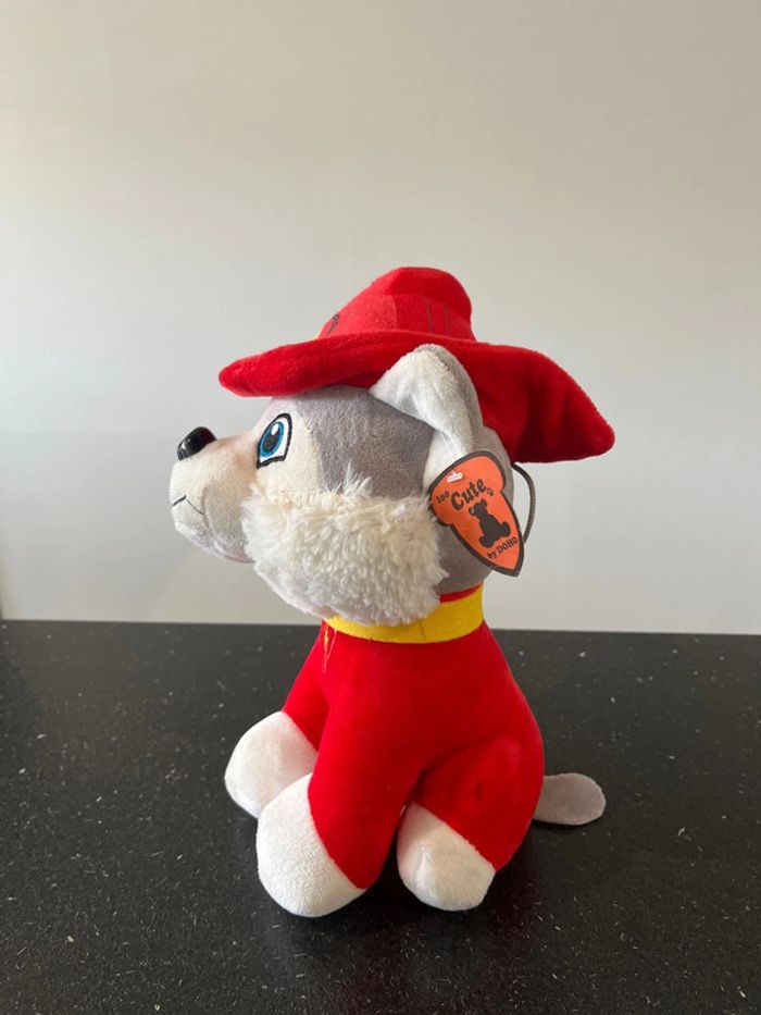 27 cm de hauteur environ Neuf avec étiquette Genre pat patrouille Blanc rouge jaune Chien Huski yeux bleu