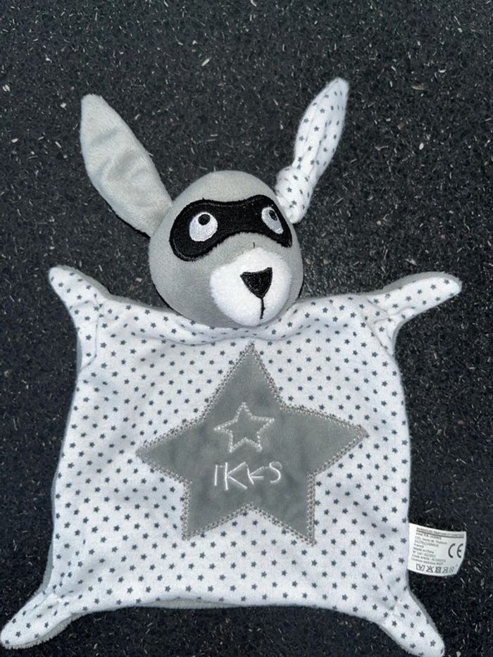 Doudou, plat, lapin, lapin gris blanc étoile, masque IKKS - photo numéro 1