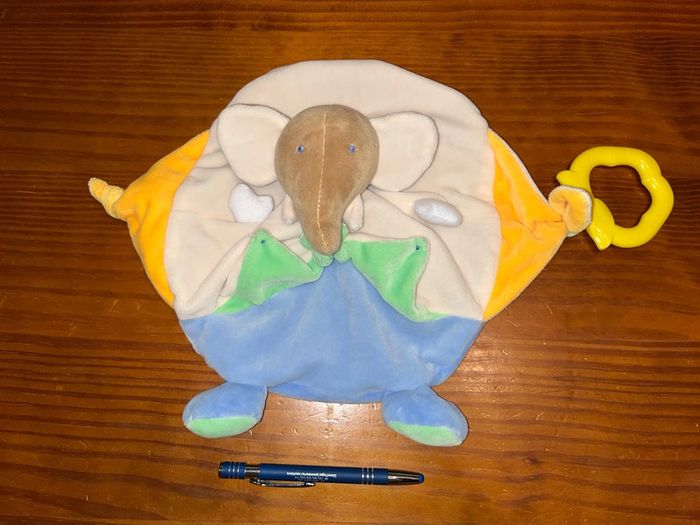 Réduction activer pour les lots. Je vous propose ce doudou très bonne qualité avec anneaux dentition, pommes velours, vert bleu, marron, beige, orange Babar, le roi des éléphants, prix non négociable pour un seul article. Merci de votre compréhension.