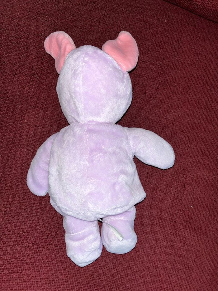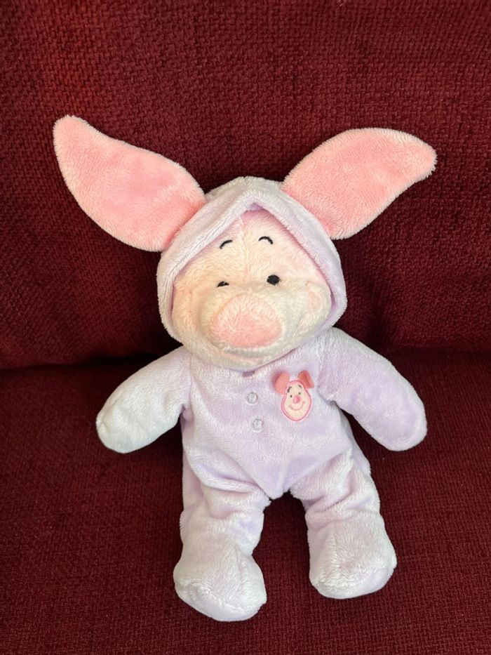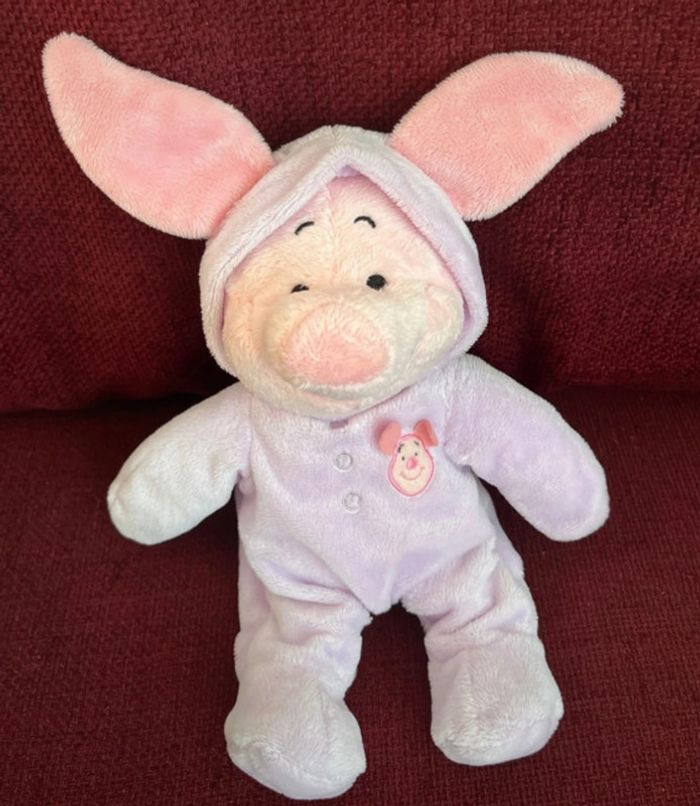 Je vous propose cette peluche à un prix fixe non négociable merci Porcinet ami de Winnie l’ourson dans son pyjama parme violet rose état Impeccable Trois petits boutons 30 cm environ sans compter les oreilles.