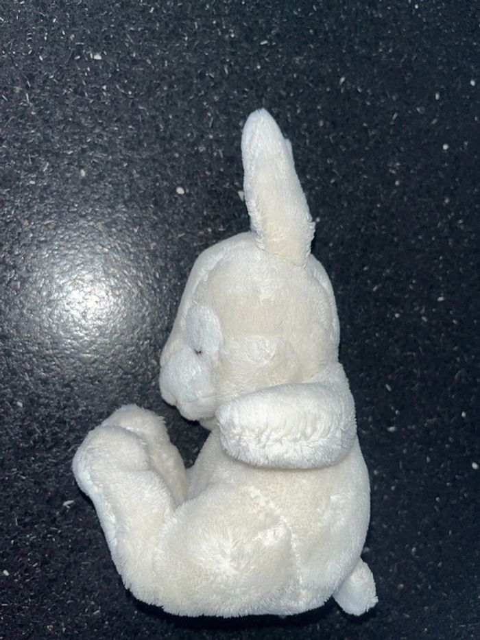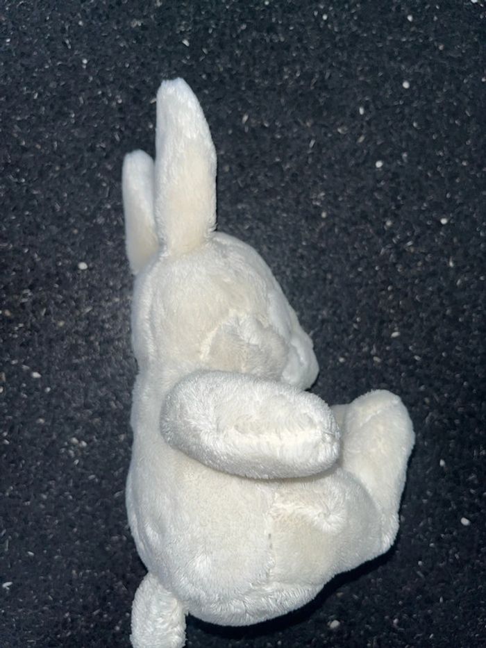 Velours fourrure beige blanc Les yeux sont fermés, lapin endormi, le nez rose petite queue blanche, hauteur total environ 20 cm H & M