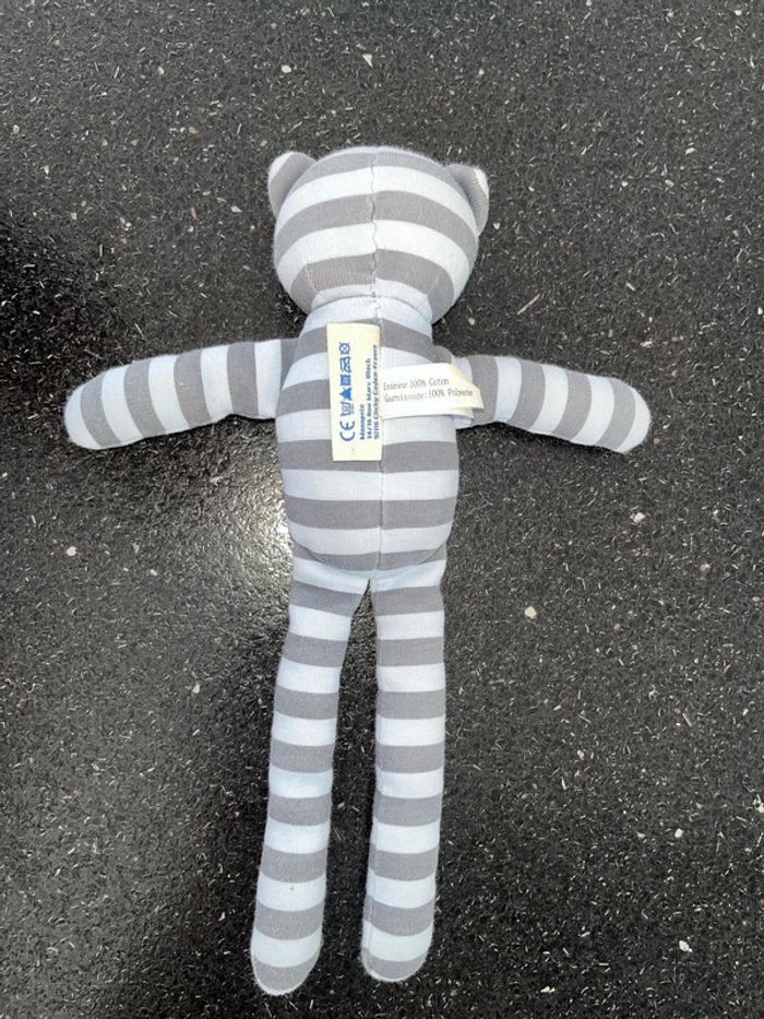 Peluche, doudou, ours, rayé bleu grisBoutchou - photo numéro 2
