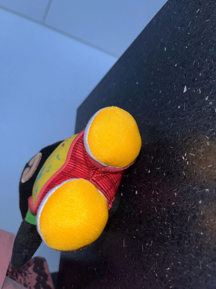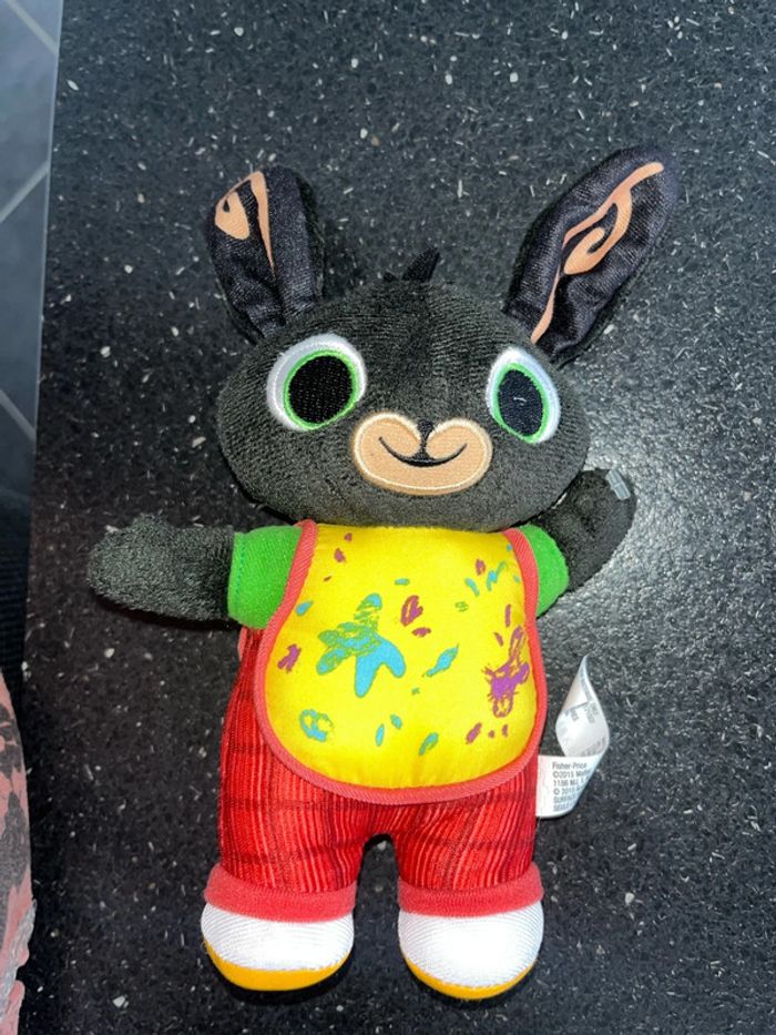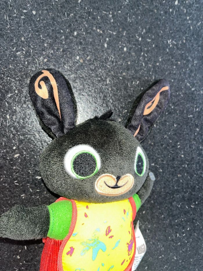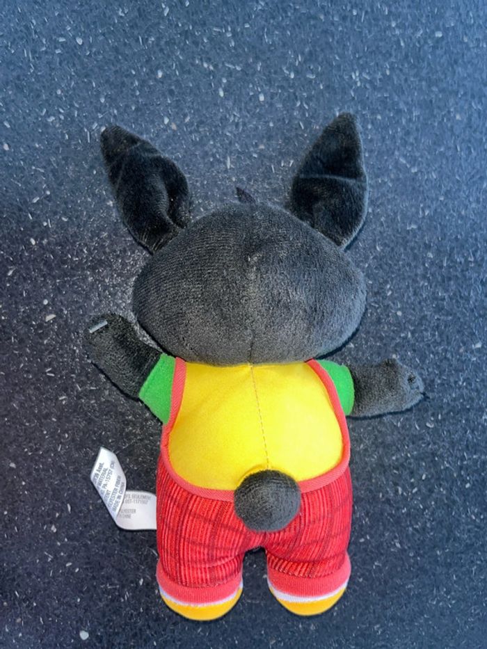 Environ 25 cm en comprenant les oreilles, Bing avec son tablier, peinture, jaune, rouge, vert, orange, blanc noir à signaler toute petite trace au niveau du pied voir dernière photo