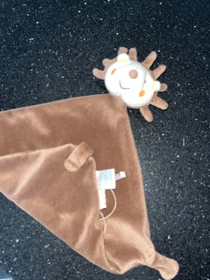 Doudou, hérisson, plat, velours, marron, attache tétine - photo numéro 1