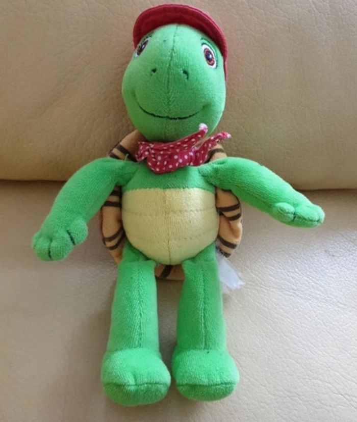 Merci de respecter mon prix Réduction activée pour les lots Peluche doudou Franklin la tortue Avec sa casquette rouge et son bandana à pois blanc