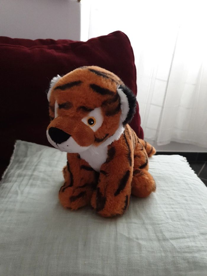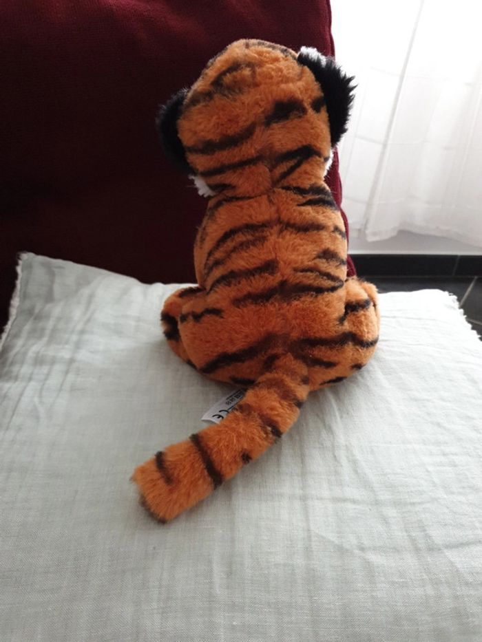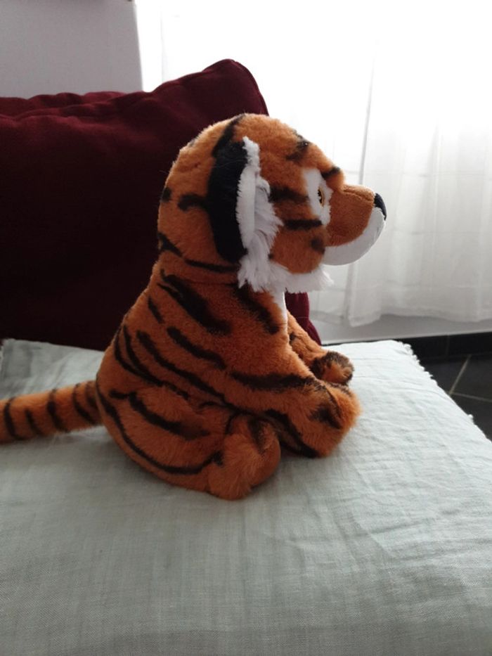 Prix fixe réduction activée pour les lots une bonne vingtaine de centimètres pour cette peluche toute douce petit tigre les yeux sont brodés