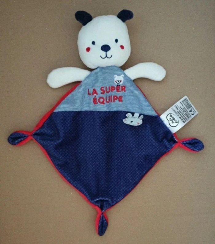 Mon prix n'est pas négociable je vous propose ce doudou la super équipe velours bleu blanc rouge tête et bras blanc Mots D'enfants de chez Leclerc