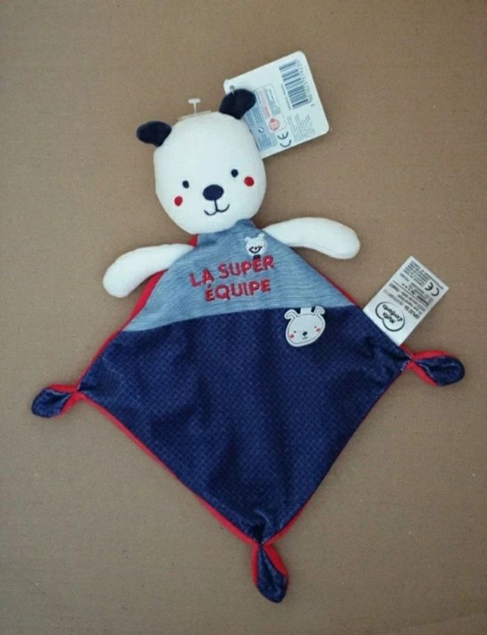 Mon prix n'est pas négociable merci je vous propose ce doudou velours bleu blanc rouge du magasin Leclerc de la marque mots d'enfants plat style mouchoir brodé la super équipe