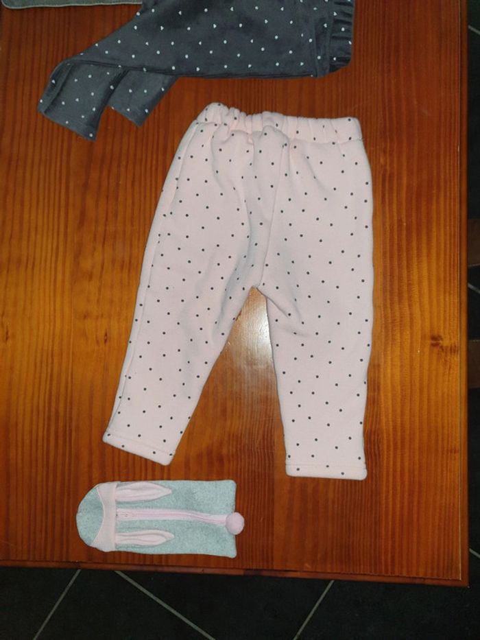 Mon prix est fixe je ne réponds pas aux offres je vous propose deux pantalons un molletonné rose avec 2 petites poches taille élastiquée Kiabi taille 18 mois un autre velours côtelé gris cœur blanc en cadeau une petite trousse lapin