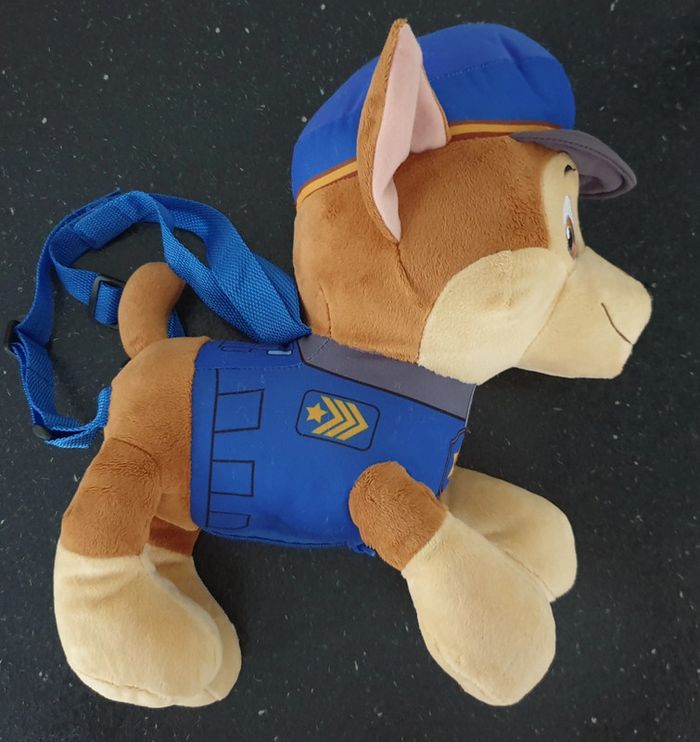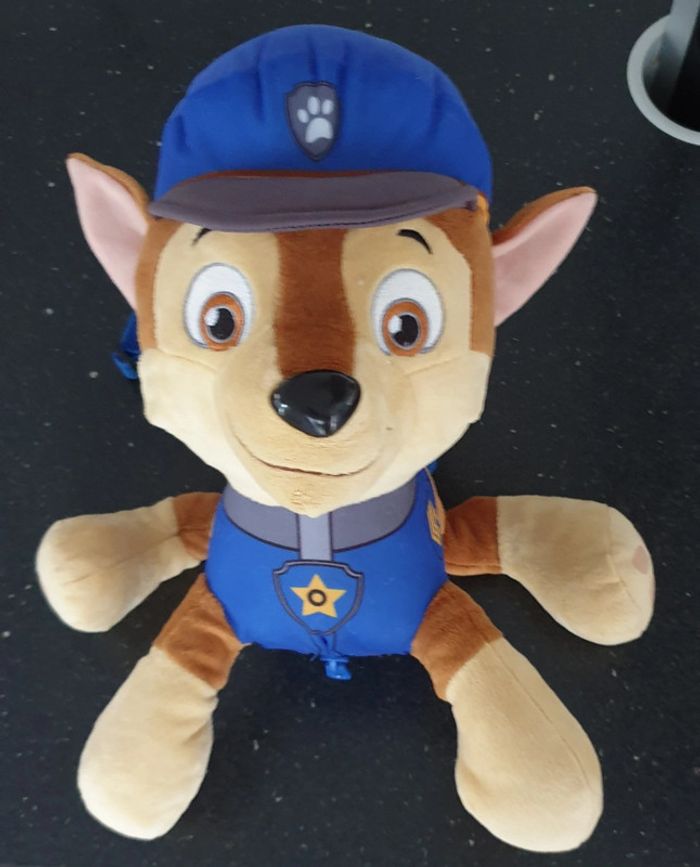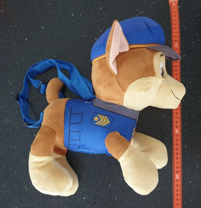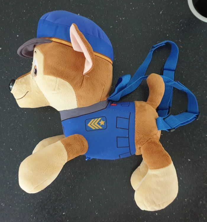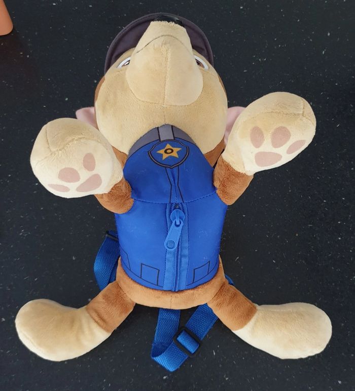 Chien policier Berger allemand Chase peluche doudou sac à dos petite poche au niveau du ventre avec fermeture éclair zip l'objet est quasi neuf jamais utilisé jamais lavé