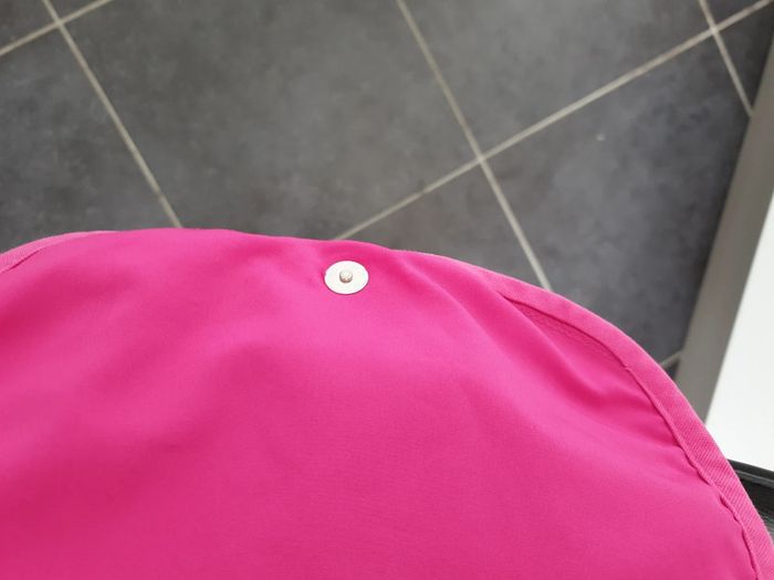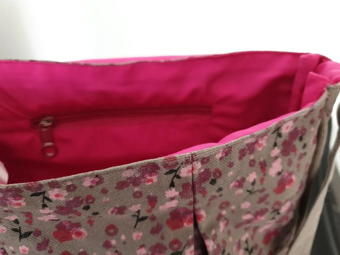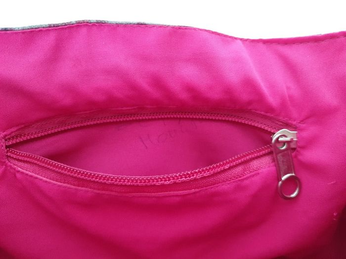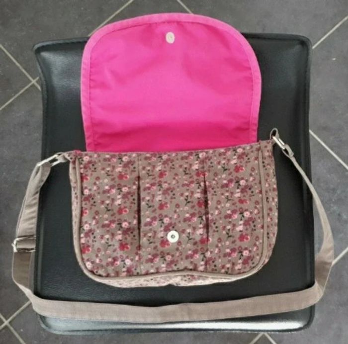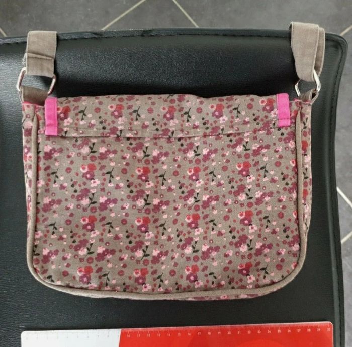 A été lavé en machine Donc très propre par contre reste nom inscrit à l'interieur Les dimensions sont : 24 x 19 cms environ Bandoulière réglable