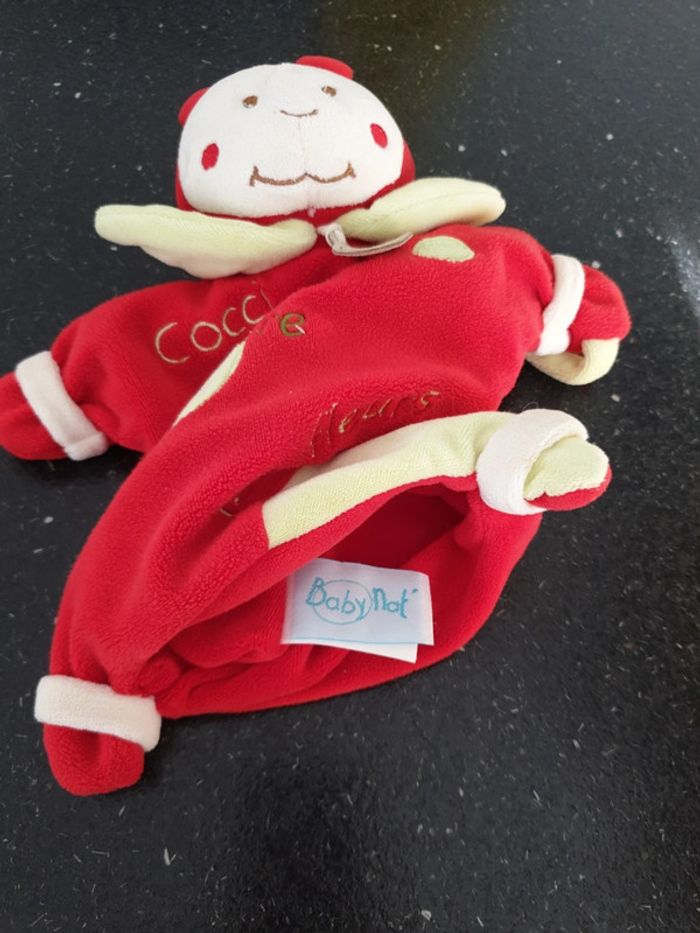 Marionnette classique lot A12037 Peluche coccinelle babynat Cocci adore les fleurs Coloris rouge jaune vert beige