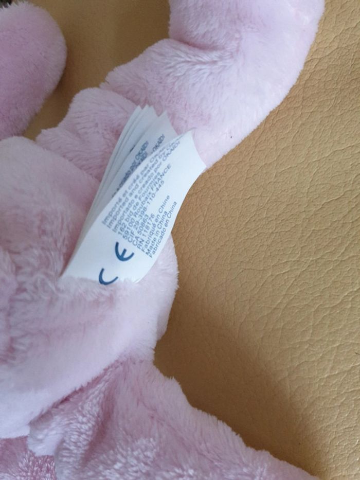 Doudou ours rose de chez obaibi Okaïdi brodé au niveau de la patte étiquette tissu présente très très bon état billes dans les fesses