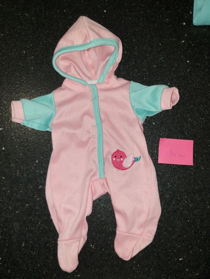 Vêtements ensemble pour poupon coloris rose bleu ciel avec capuche Pour poupée d'environ 34 cm motif oiseau