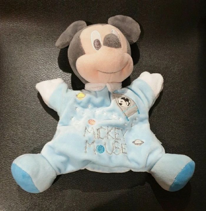 Fusée etoiles planète couleur bleu blanc gris en velours la petite souris Mickey Mouse Disney Baby Nicotoy