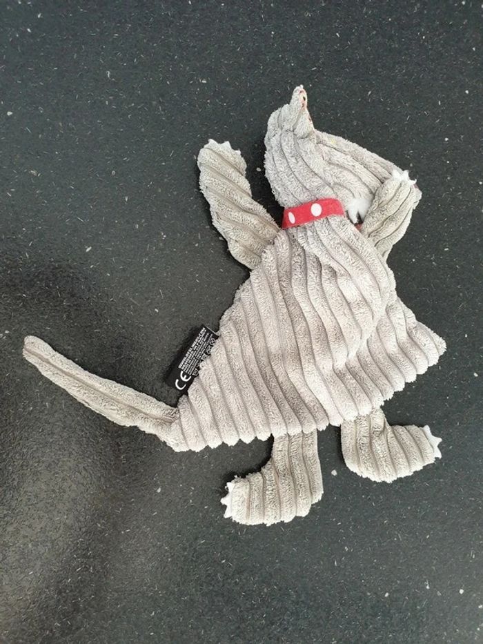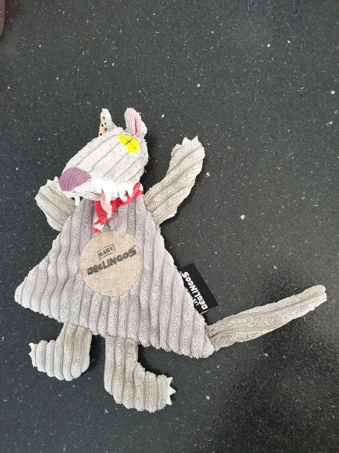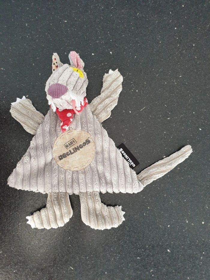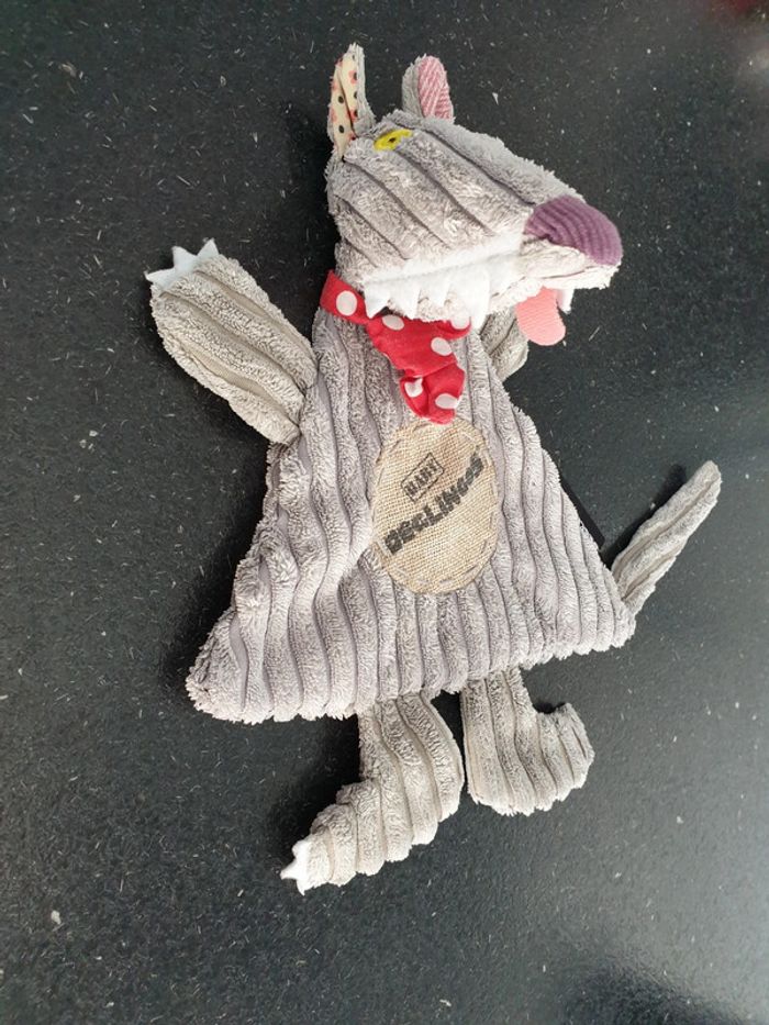 Le loup big boss baby Déglingos velours côtelé gris rond toile de jute sur le devant foulard cravate bandana rouge pois blanc très bon état