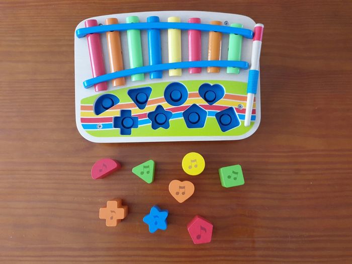 Jouet en bois xylophone très coloré rouge orange vert bleu ainsi qu'un piano avec les formes carré cœur rond étoile triangle croix demi cercle octogonale ❤❤❤ Pas besoin de pile pour se jouet ❤❤❤