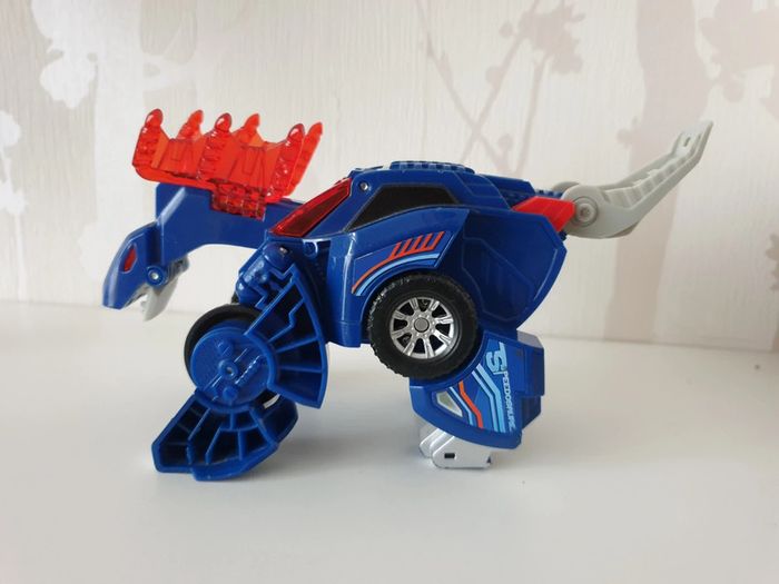 En dinosaure Rouge bleu noir gris 15 cm de longueur