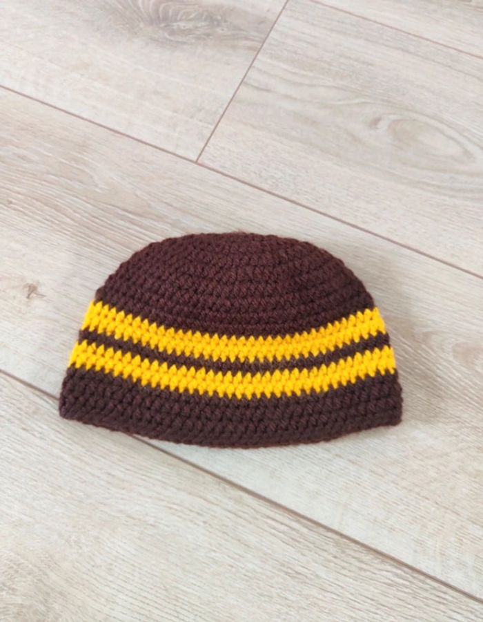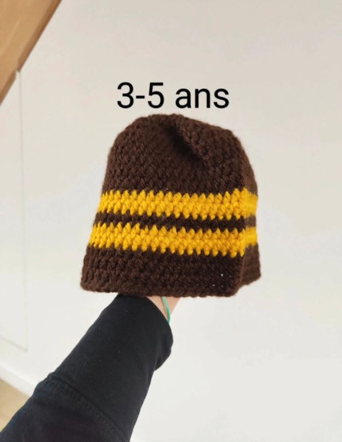 Vend bonnet en laine marron et jaune Garçon Taille : 3-5 ans Fait maison Très bon état #petitspirates3ans #petitspirates4ans #petitspirates5ans