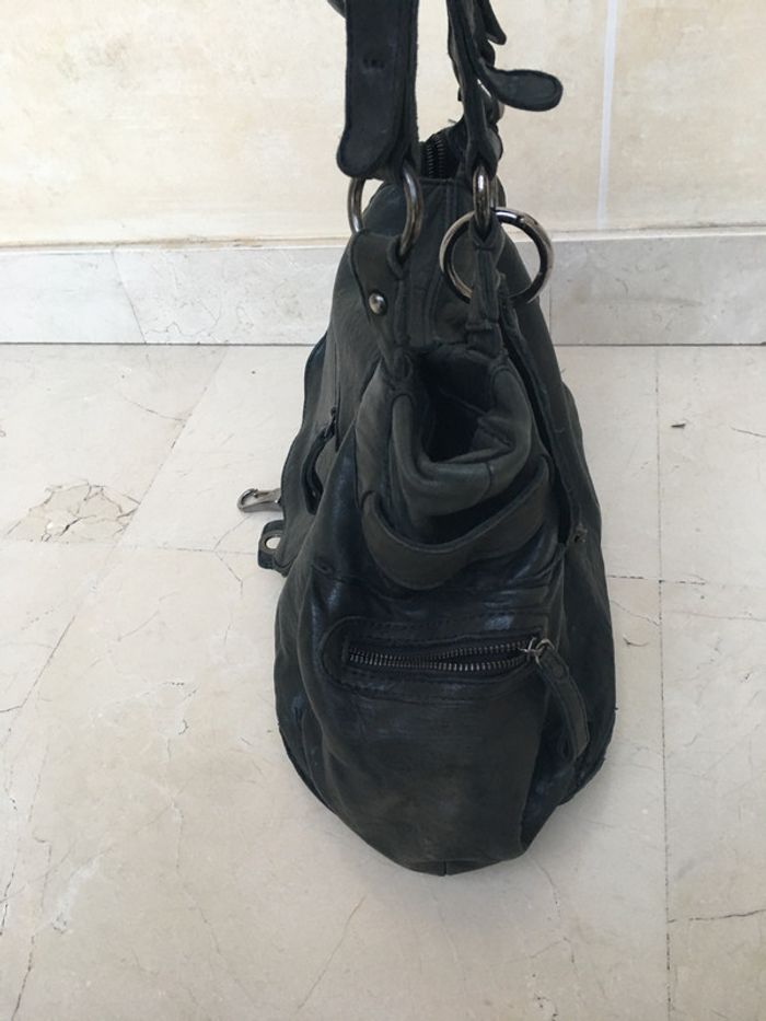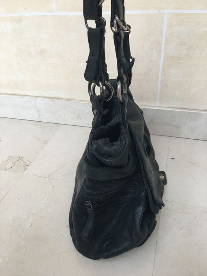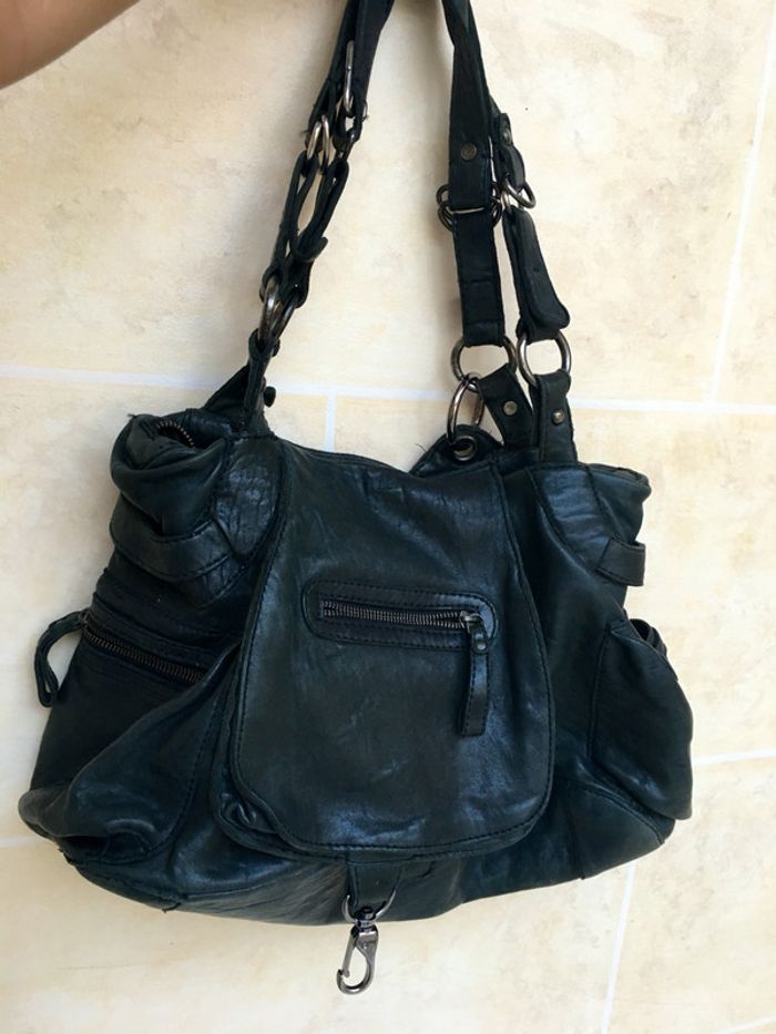 Sac en cuir noir Marque : Les petites bombes plein de poches intérieures et extérieures bon état général (porté mais pas abîmé) effet patiné #sac #cuir #sacencuir