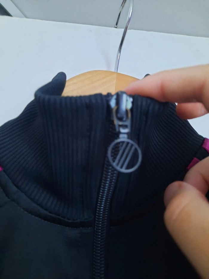Veste Adidas noir et violet Légère perte de couleur au niveau de la fermeture éclair Et tissu légèrement bouloché (si vous avez la machine il reviendra à comme neuf) Taille 10ans #Mesventesdixans