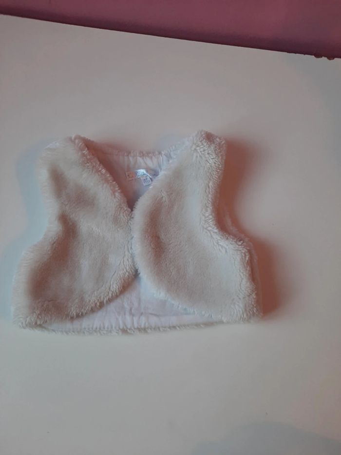 Veste blanche sans manche Matière douce 1 bouton a l'intérieur Taille 9mois 71cm En très bon état #Mesventesneufmois