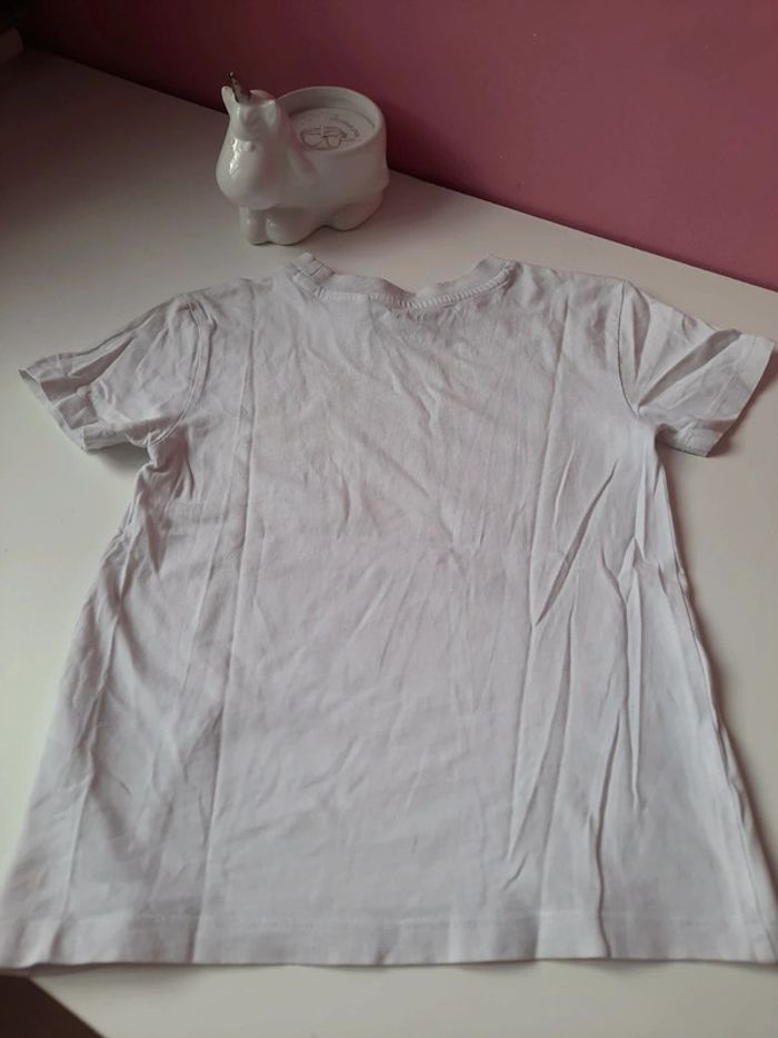 Tee shirt blanc avec écriture en parfait état A noter un petite marque de Bic à côté du H voir photo Taille 8ans #Mesventeshuitans