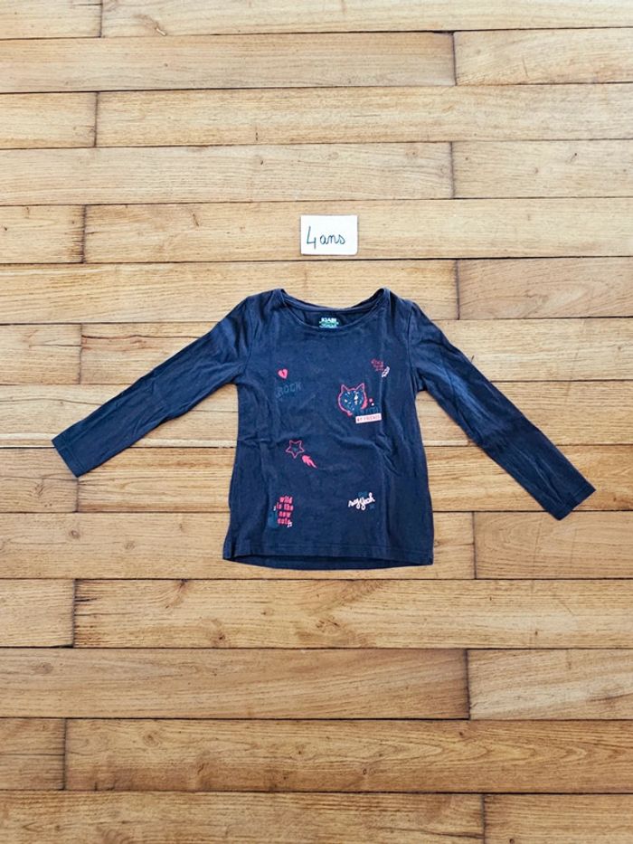 Tee shirt manches longues bleu marine petite fille 4 ans