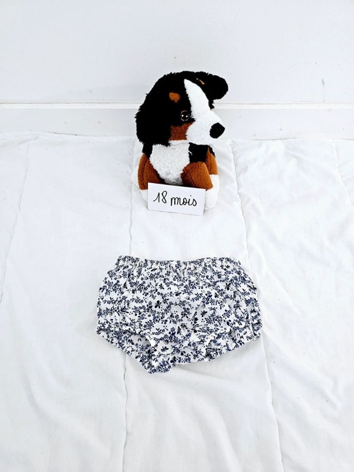 Short bloomer bébé fille fleurs fleuri liberty blanc et bleu marine bébé fille 18 mois Sergent Major - photo numéro 1