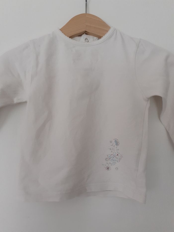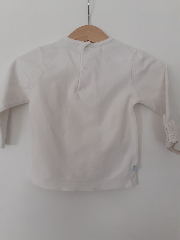 T-shirt de marque Obaïbi ; Taille 12 mois ; Ton blanc ; En très bon état ( peluche très légèrement).