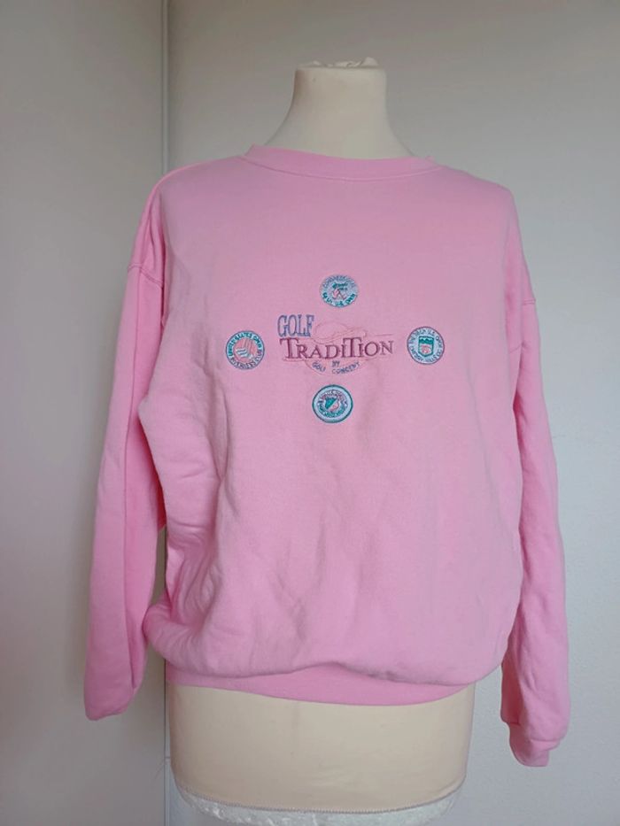 Sweat vintage rose brodé - photo numéro 1