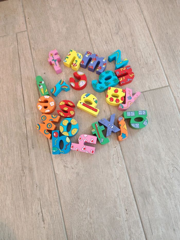 Lot de lettres en bois colorées