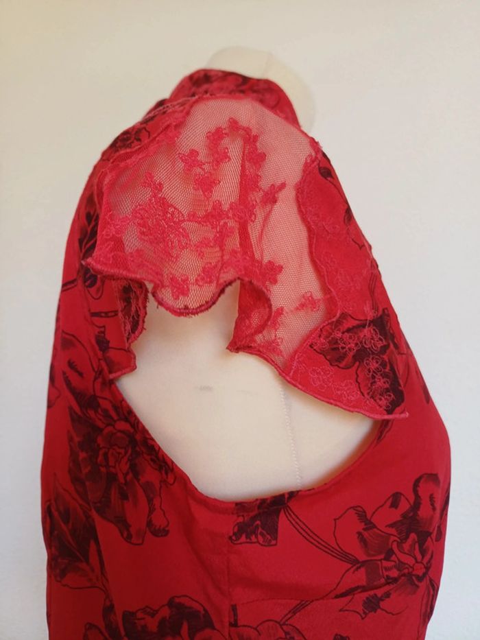 Tee shrit coupe asiatique à fleurs et dentelle - photo numéro 5