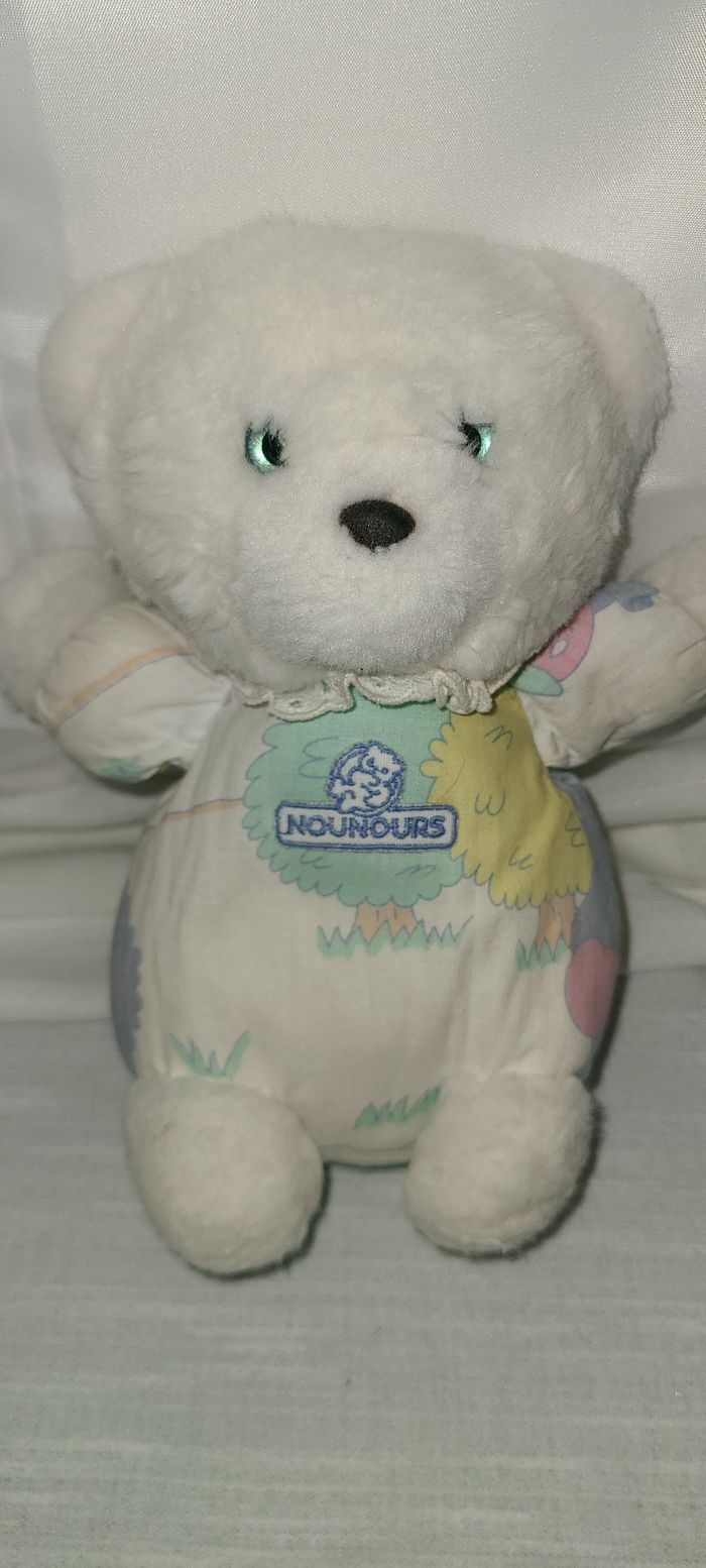 PELUCHE OURS EN PELUCHE BLANC yeux bleu - photo numéro 1
