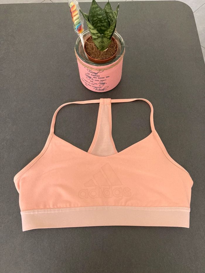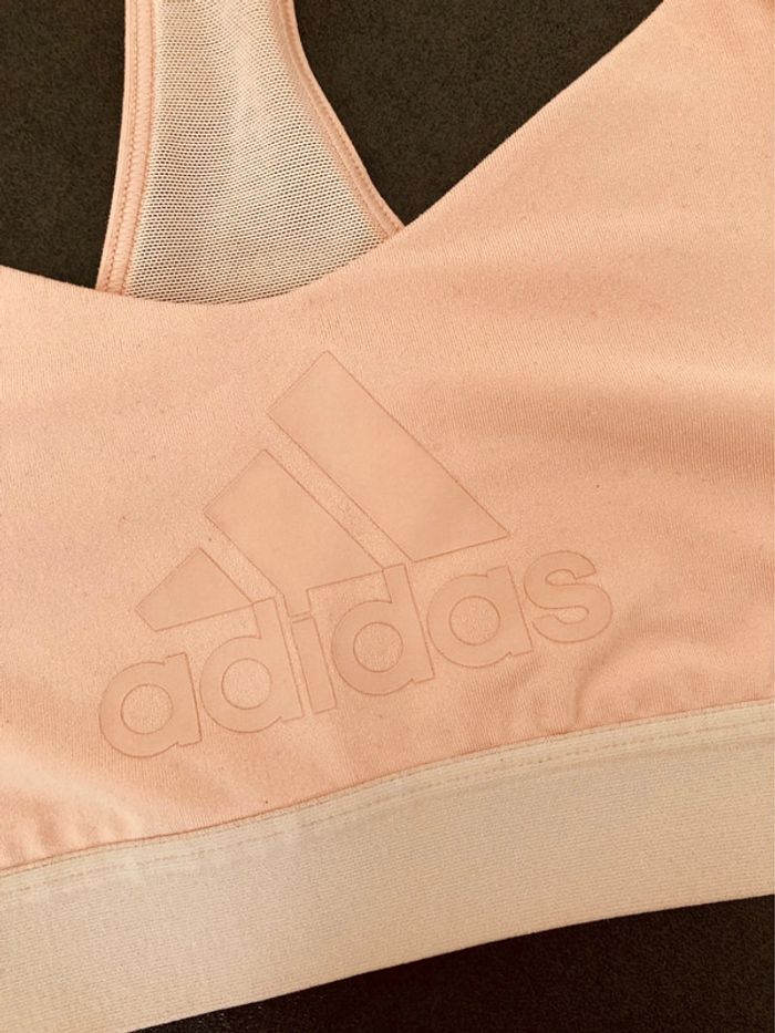 Adidas Brassière coloris saumon Très bon état Étiquette découpée donc voici les mesures Tour de la brassière 62 cms Hauteur bretelle / bas de la brassière 28cms #akkeos_fille_12ans #akkeos_fille_14ans #akkeos_fille_16ans