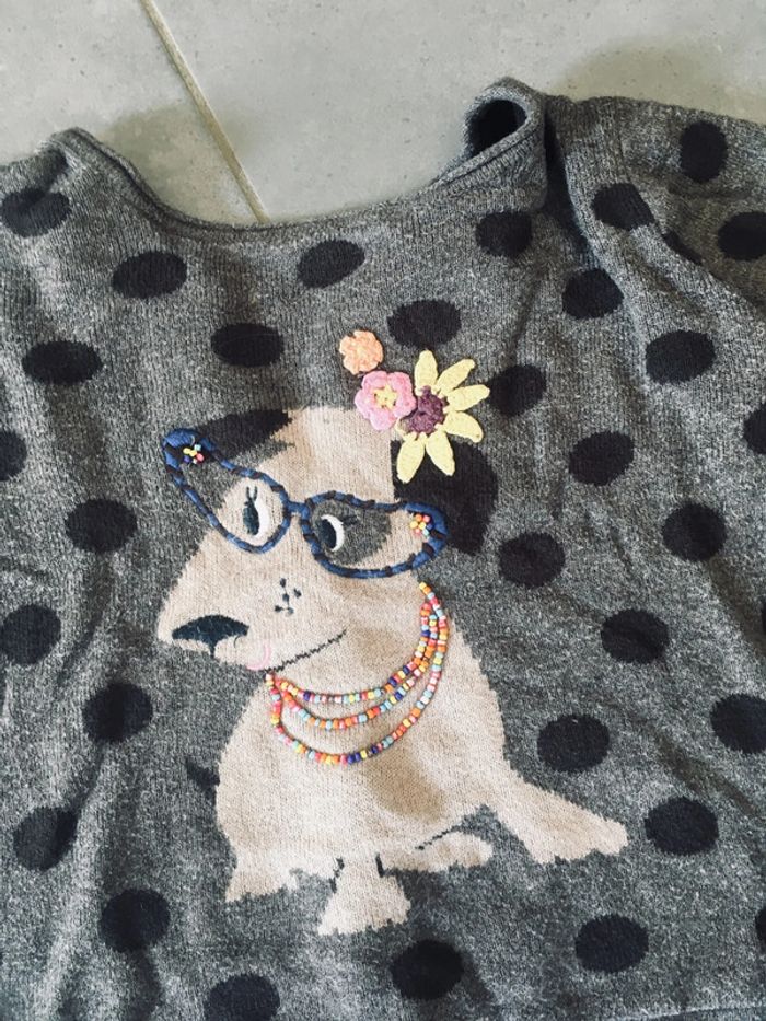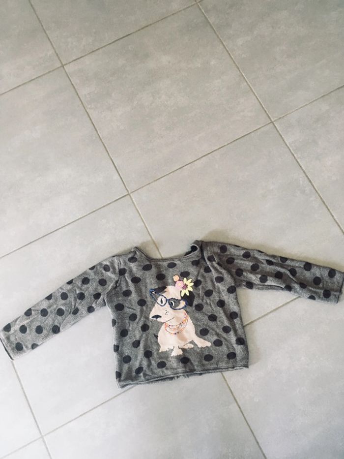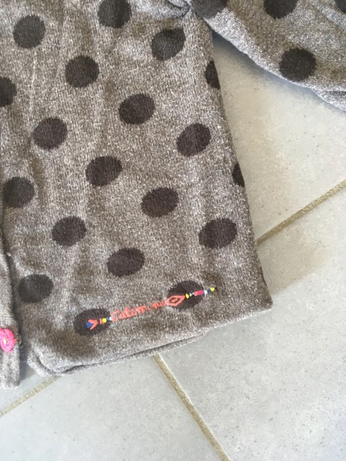 Haut pouvant se porter comme un gilet ou comme un pull avec les pressions derrière Catimini Taille 4 ans Bon état: il manque 2 petites fleurs #akkeos_fille_4ans