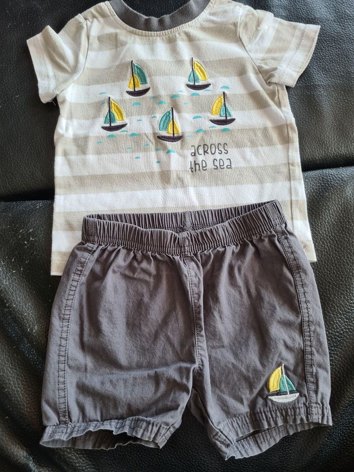 Ensemble short +tee shirt marin - photo numéro 1