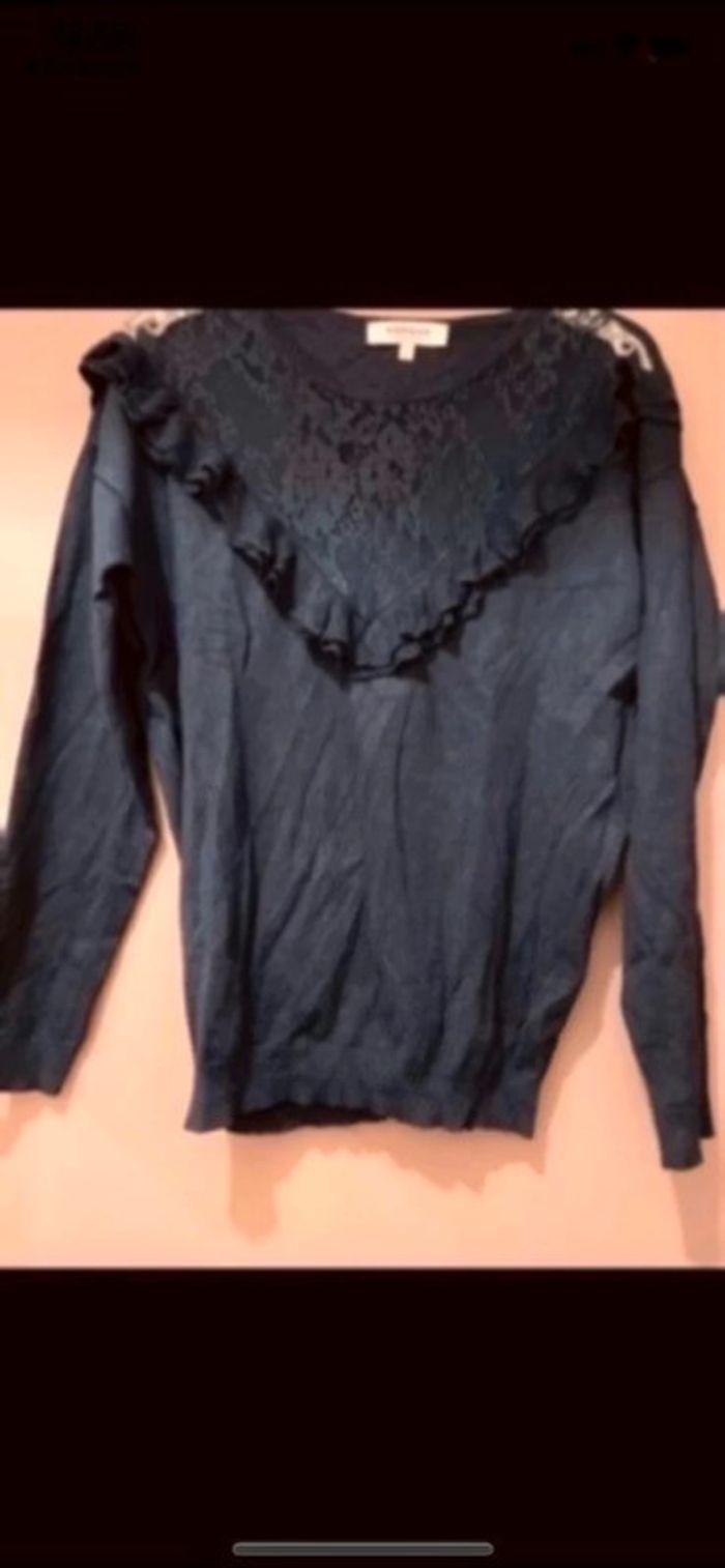 Magnifique pull bleu marine avec dentelle et volants sur le devant - Taille 36/S mais convient également pour un 38/M (plus près du corps)- Etat neuf #drapdelaine #manteaulong #manteauneuf #doudoune #veste #robeàfleurs #robejean #chemisejean #chemiselongue #pullneuf #robeprintemps #robehiver #robeete #tunique #robeautomne #topneuf #pullhiver #pullneuf #robepull #madeinfrance #topneuf #pullhiver #pullneuf #doudounelongue #topchic #pullcolv #drapdelaine #bonnet #robelongue #pullhiver #pullsexy #caban #trenchcoat #vesteloose #oversize #manteauchic #blousonlong #giletchaud #vestelongue #manteaucarreaux #blousonchaud #manteauvintage #manteaucamel #tunique