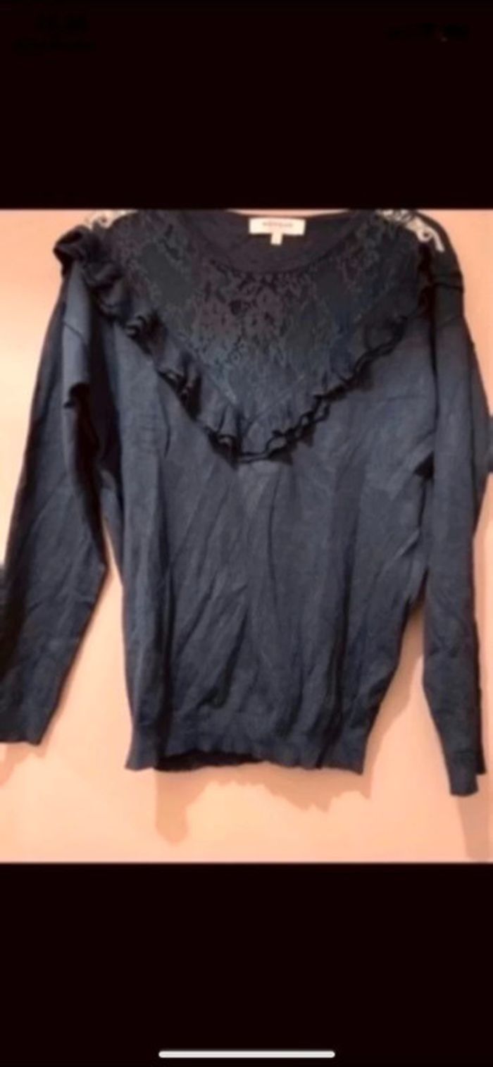 Magnifique pull bleu marine avec dentelle et volants sur le devant - Taille 36/S mais convient aussi pour un 38/M - Etat neuf #drapdelaine #manteaulong #manteauneuf #doudoune #veste #robeàfleurs #robejean #chemisejean #chemiselongue #pullneuf #robeprintemps #robehiver #robeete #tunique #robeautomne #topneuf #pullhiver #pullneuf #robepull #madeinfrance #topneuf #pullhiver #pullneuf #doudounelongue #topchic #pullcolv #drapdelaine #bonnet #robelongue #pullhiver #pullsexy #caban #trenchcoat #vesteloose #oversize #manteauchic #blousonlong #giletchaud #vestelongue #manteaucarreaux #blousonchaud #manteauvintage #manteaucamel #zara #tunique
