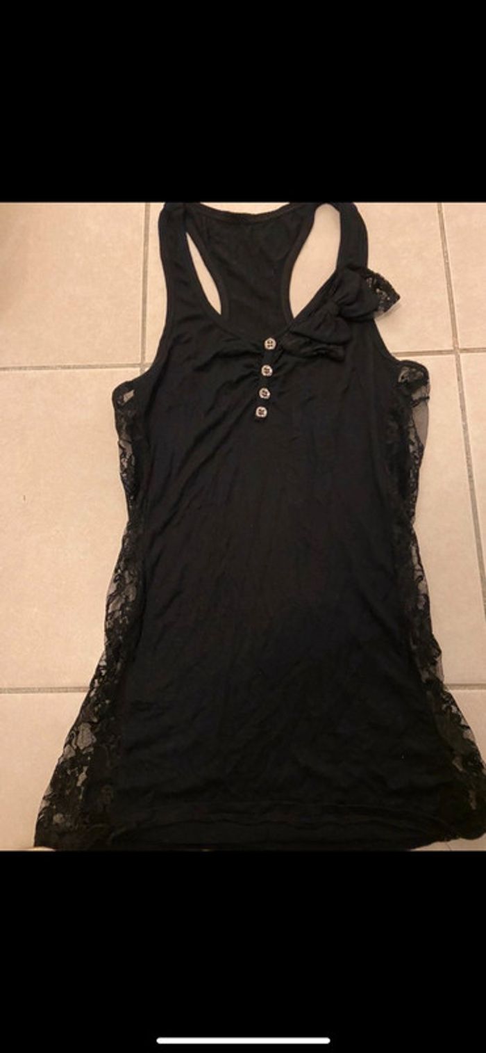 Joli débardeur noir avec noeud et boutons devant - dentelle sur les cotés - très bon état