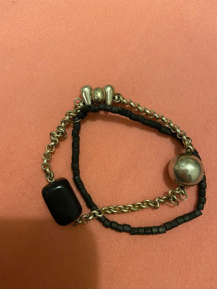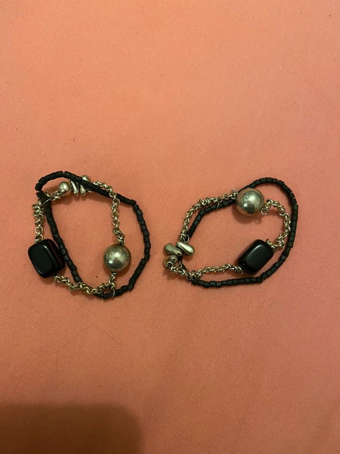 lot 2 bracelets argentés et perles noires élastique très bon état