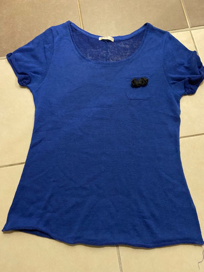 Top bleu électrique avec petit noeud noir sur la poche avant - taille unique #drapdelaine #manteaulong #manteauneuf #doudoune #veste #robeàfleurs #robejean #chemisejean #chemiselongue #pullneuf #robeprintemps #robehiver #robeete #tunique #robeautomne #topneuf #pullhiver #pullneuf #robepull #madeinfrance #topneuf #pullhiver #pullneuf #doudounelongue #topchic #pullcolv #drapdelaine #bonnet #robelongue #pullhiver #pullsexy #caban #trenchcoat #vesteloose #oversize #manteauchic #blousonlong #giletchaud #vestelongue #manteaucarreaux #blousonchaud #manteauvintage #manteaucamel #zara #tunique