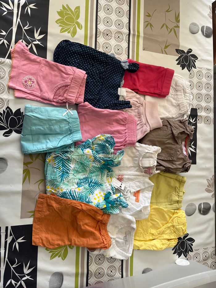 Lot de 15 vêtements 3 pantalon 6 short 3 robes 1 jupe 1 chemise 1 débardeur 1 gilet Possible à l’unité Plusieurs marques différentes #lilou49250fille6mois