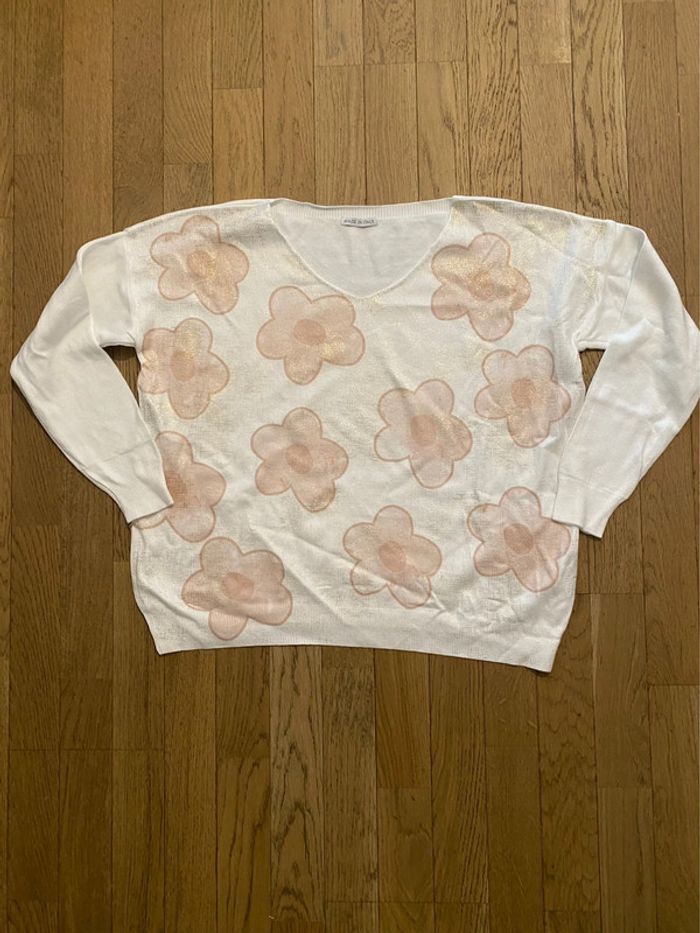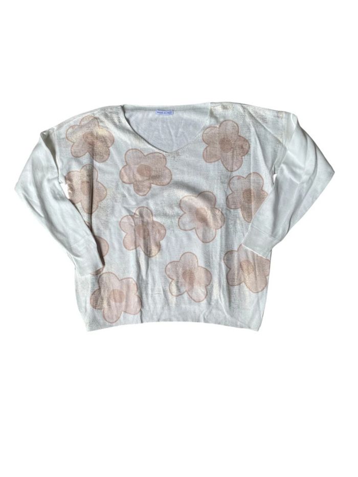 Pull large blanc à fleurs made in Italy taille unique - photo numéro 1